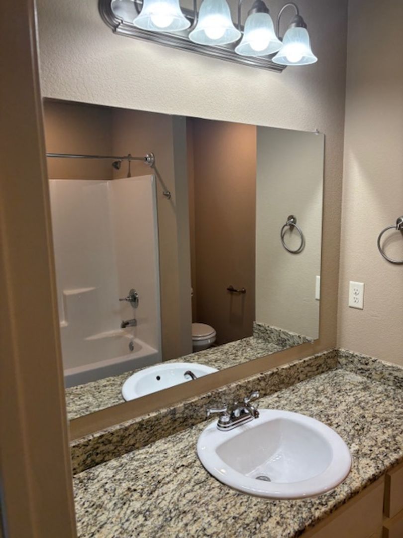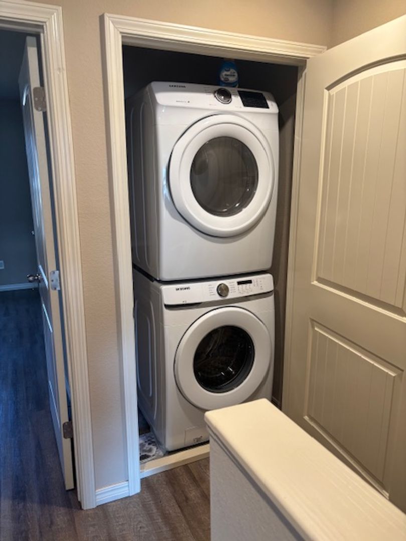 Two story townhouse, large living room and open kitchen. Deck off the kitchen, nice pantry area, half bath downstairs, two bedrooms upstairs with a jack and jill bathroom. Comes with all appliances, built in microwave, granite countertops, two car covered parking. Great location, can get to anywhere fast.